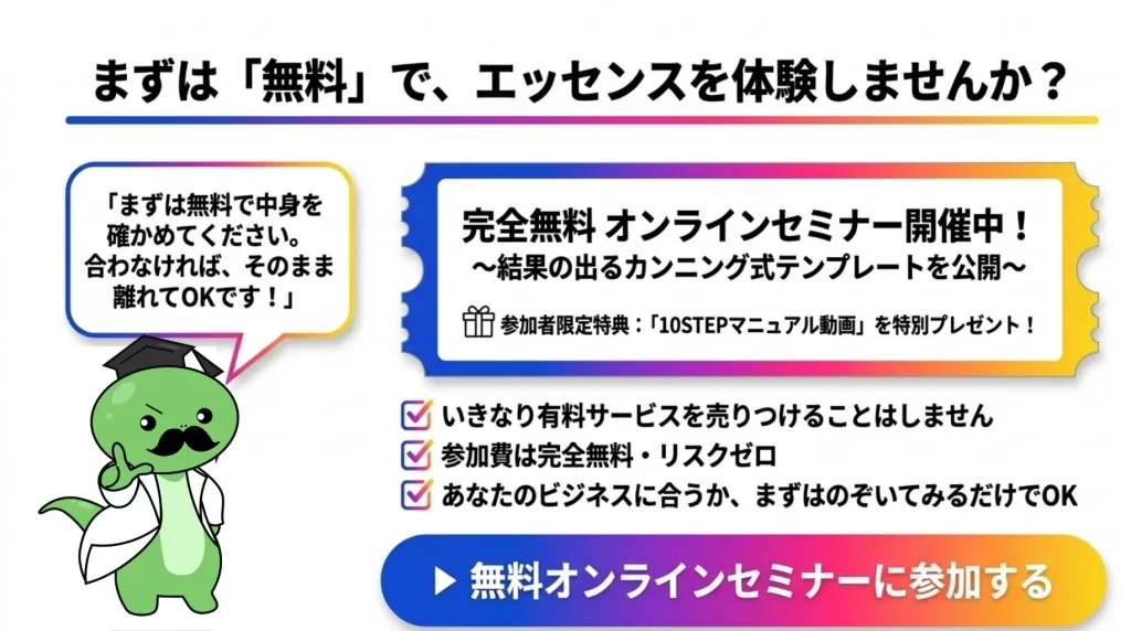 いきなり有料のサービスを売りつけることはしません。まずは無料セミナーで内容を確かめてみてください。